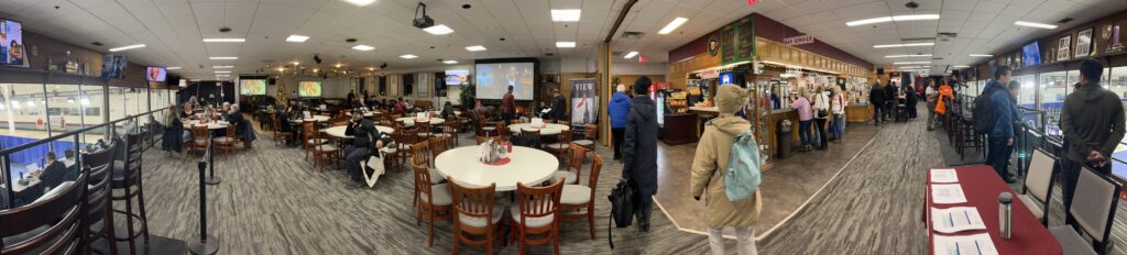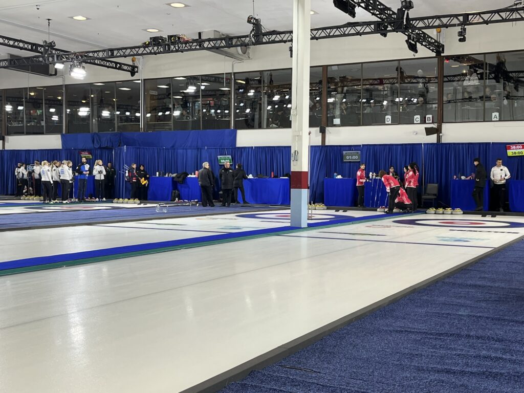空港からホテルにチェックインし、会場へ行きました。会場は、Kelowna Curling Club と言うところです。クラブなので、競技場と言うよりもクラブの会員方が楽しめる雰囲気がありました。クラブハウスの2階には食事やお酒が飲めるスペースがかなり広くあり、窓からカーリング場が見えるようになっています。ここから競技を観戦する方もいらっしゃいます。